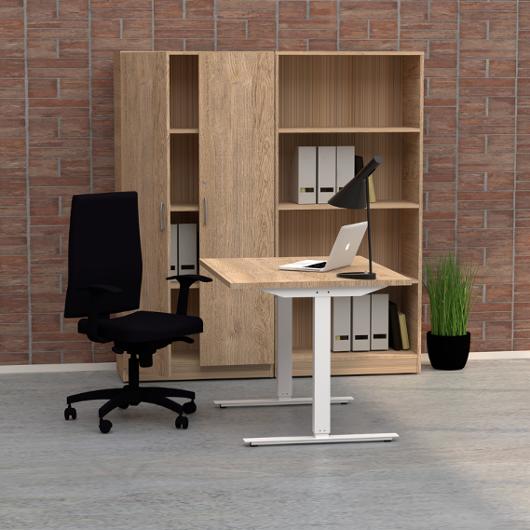 Produkten uppfyller Möbelfaktas kravspecifikation gällande kvalitet, miljö och socialt ansvar. Monterad hylla för kontor, arkiv, och där förvaring behövs. Ryggen är 18 mm tjock för att skapa en stabil och gedigen möbel vilket även gör att man kan använda förvaringsserien som en rumsdelare med en synlig rygg. Välj olika höjder, djup, antal hyllplan och med eller utan dörrar samt olika färger. Skåpet är tillverkat i tålig laminat som är färgbeständigt år efter år och lätt att göra rent.
