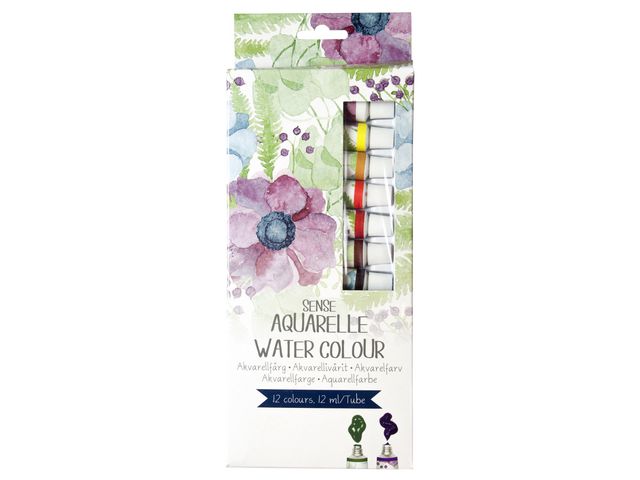 Set med 12 st akvarellfäger i olika kulörer. Ett set med hela 12 kulörer akvarellfärg. Späd färgen med vatten för att uppnå den nivå av transparens som önskas. Färgerna kan blandas för att få fram nya kulörer. Använd akvarellpapper med den textur som önskas och välj ett papper av god kvalitét! - Akvarellfärg - Volym: 12x12ml - 12 kulörer