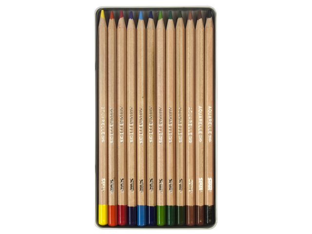 Sense Akvarellpenna 12-P i plåtask. - 3,8 mm mina - Laverbar/vattenlöslig penna - Starka och klara färger - Penna med mjuk känsla som lämnar ifrån sig rikligt med färg
