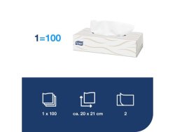 Tork Premium F1 ansiktsservetter är extra mjuka och utformade för att ge bästa möjliga komfort. Tork Premium F1 ansiktsservetter är bra att ha, oavsett om det är i badrummet, hemmet eller på kontoret. De är tillverkade med 2-lagers papper, vilket gör dem tjocka, hållbara och bekväma att använda. Dessa servetter är extra mjuka och är absorberande för bättre vattenansamling. - Absorberande för överlägsen kvalitet - Extra mjuk känsla för maximal komfort - Utmärkt för att torka rinniga näsor - 2 lager - Antal ark: 100 - Miljöcertifiering: EU Ecolabel - Förpackad kvantitet: förpackning med 1 - Bredd: 200 mm - Längd: 208 mm - Färg: Vit