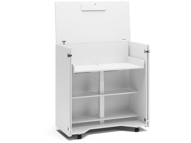 På endast 19 sekunder förvandlas Cubic till en komplett ergonomisk arbetsplats, stilren möbel på en kubik. Cubic erbjuder rätt ergonomi med ett höj- och sänkbart arbetsbord komplett med laddstation, plats för förvaring och lätt att flytta. Kabelgenomföring samt kabelränna ingår i standardutförande. Flera tillbehör finns att köpa till Cubic tex funktionslist, monitorfäste, LED lampa, pennkopp, systemhylla, grenuttag, Q1 laddare, lås till dörrarna, balanspallen Point samt underarmstöd. Vitlaminat