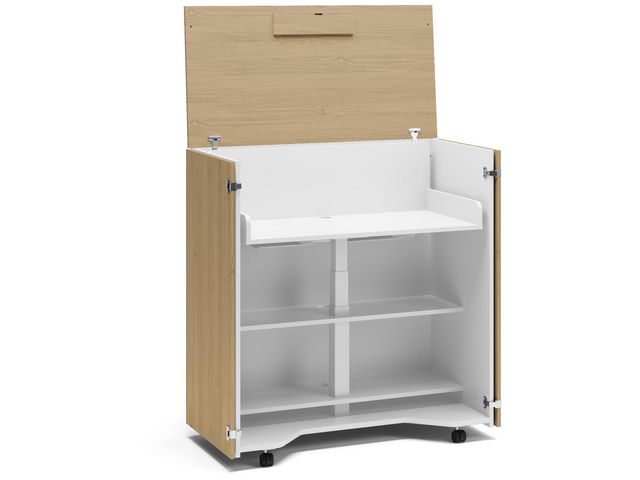 På endast 19 sekunder förvandlas Cubic till en komplett ergonomisk arbetsplats, stilren möbel på en kubik. Cubic erbjuder rätt ergonomi med ett höj- och sänkbart arbetsbord komplett med laddstation, plats för förvaring och lätt att flytta. Kabelgenomföring samt kabelränna ingår i standardutförande. Flera tillbehör finns att köpa till Cubic tex funktionslist, monitorfäste, LED lampa, pennkopp, systemhylla, grenuttag, Q1 laddare, lås till dörrarna, balanspallen Point samt underarmstöd. Vitlaminat stomme / front och lock i eklaminat.
