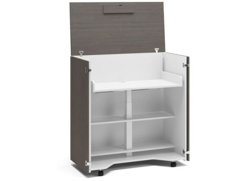 På endast 19 sekunder förvandlas Cubic till en komplett ergonomisk arbetsplats, stilren möbel på en kubik. Cubic erbjuder rätt ergonomi med ett höj- och sänkbart arbetsbord komplett med laddstation, plats för förvaring och lätt att flytta. Kabelgenomföring samt kabelränna ingår i standardutförande. Flera tillbehör finns att köpa till Cubic tex funktionslist, monitorfäste, LED lampa, pennkopp, systemhylla, grenuttag, Q1 laddare, lås till dörrarna, balanspallen Point samt underarmstöd. Vitlaminat stomme / front och lock i mörklaserad asklaminat..