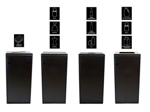 Funkar perfekt att kombinera flera kärl på rad för olika avfall. För inomhus- och utomhusbruk.