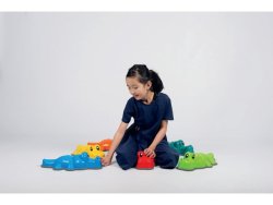 Perfekta för balans och motorikträning. Gå, sitt och balansera på krokodilerna. Bygg fantasifulla balansbanor med krokodiler i rad, i ring eller andra konstellationer. Med sina varierande färger och former skapar krokodilerna en sensorisk och taktil upplevelse. Stapla dem på varandra för smidig förvaring. Kommer i 6-pack.