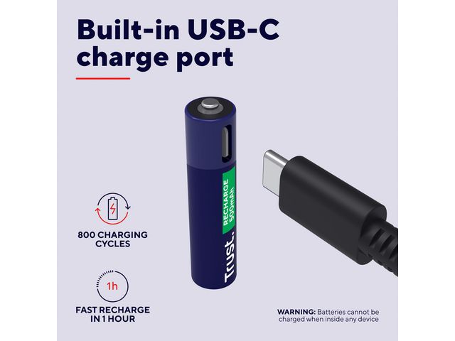 Ladda dessa batterier direkt med den medföljande USB-C-kabeln.