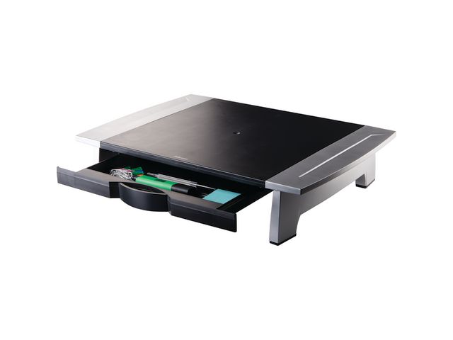 Klarar stora bildskärmar upp till 36 kg Justerbara fötter ger 5 höjdjusteringar för att maximera komforten - Förvara bärbar dator under för användning på kontoret och för att spara utrymme - Förvaringsfack för kontorsmaterial - Ackrediterad enligt BS EN ISO 9241 av FIRA international, en oberoende Ergonomic Accreditör - Maximal bildskärmsstorlek: 28' - Maximal monitorvikt: 36 kg - Höjdjusteringar: 10,7 / 12 / 13,3 / 14,6 / 15,9 cm