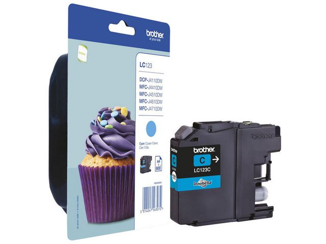 Få bästa möjliga utskriftskvalitet, skarp text och livfull grafik med Brother LC123C cyan bläckpatron. Brother LC123C cyan bläckpatron ger lysande, tydliga resultat för utskrifter av hög kvalitet. Bläcket som är utformat för optimal användning i olika Brother-maskiner är kladdfritt och färgbeständigt, vilket ger hållbara utskrifter. Den här cyanfärgade bläckpatronen ger en kapacitet på upp till 600 sidor. Det är ett utmärkt val för att uppnå utskrifter av hög kvalitet. - Färg: Cyan - Kapacitet: Upp till 600 A4-sidor - Enkelt att installera och byta - Kladdfri och färgbeständig - Ger text och bilder med utmärkt kvalitet - Kapacitet: 600 sidor - Passar till: DCP-J4110DW, DCP-J725DW, MFC-J4510DW.