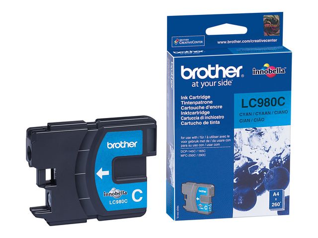 Få bästa möjliga utskriftskvalitet, skarp text och livfull grafik med Brother LC980C cyan bläckpatron. Brother LC980C cyan bläckpatron ger lysande, tydliga resultat för utskrifter av hög kvalitet. Denna kassett täcker i princip alla utskriftsbehov, från rapporter och diagram till häften och presentationer. Bläcket som är utformat för optimal användning i olika Brother-maskiner är kladdfritt och färgbeständigt, vilket ger hållbara utskrifter. - Färg: Cyan - Kapacitet: Upp till 260 A4-sidor - Enkelt att installera och byta - Kladdfri och färgbeständig - Ger text och bilder med utmärkt kvalitet - Kapacitet: 260 sidor - Passar till: DCP-145C, DCP-165C, DCP-195C, MFC-295CN