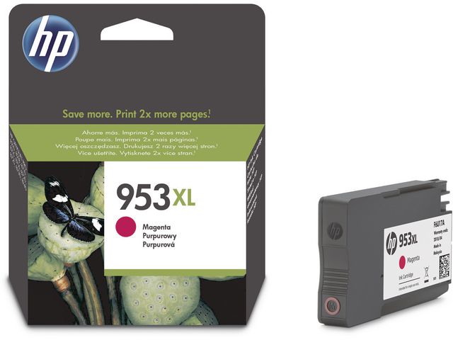 HP 953XL-bläckpatronen i magenta producerar upp till 1 600 sidor i professionell kvalitet. Med HP 953XL-bläckpatronen får du professionella resultat. Den här bläckpatronen är kompatibel med HP OfficeJet Pro 8000-serien med bläckstråleskrivare. Med den här bläckpatronen sparar du tid eftersom den kan användas för att skriva ut i höga hastigheter. En patron i magenta med hög kapacitet skriver ut upp till 1 450 sidor. Det pigmentbaserade bläcket är utformat för användning på kontoret och skriver ut livfulla färger som får dina affärsdokument att sticka ut. HP-kassetter ger imponerande tillförlitlighet. Den här bläckpatronen är också enkel att återvinna. - Färg: Magenta (pigmenterat) - Singelförpackning - Professionell kvalitet - Fantastiskt värde - Hög utskriftshastighet - Kapacitet: 1.450 sidor - Passar till: HP Officejet Pro 7720 Wide Format, 7730 Wide Format, 7740, 8210, 8218, 8710, 8715, 8718, 8719, 8720, 8725, 8730, 8740, 8745