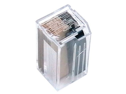 Oanvända blad på ena sidan, använda skjutes in i en öppning på andra sidan.