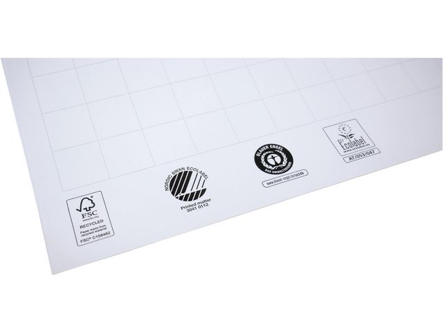 Legamaster SKETCH ECO papper för blädderblock rutnät 2x 50 ark - Blädderblock med rutnät med 50 ark vardera - Tilldelad 4 certifieringar på A-nivå: FSC®, EU-Ecolabel, Blauer Engel, Nordic Swan - Ett klorfritt blekt återvinningsbart papper - Bleed-through beständigt - En universell 6-hålsperforering och mikroperforering i toppen av varje ark - Arkets storlek: 98 x 65 cm - Pappersvikt: 80 g - Rutstorlek: 2,5 x 2,5 cm - Ingår i leveransen: 2x edding 31 EcoLine blädderblockspennor - Tillverkad av 100% återvunnet papper - Denna produkt är tillverkad av material från välskötta, FSC®-certifierade skogar och - andra kontrollerade källor (FSC C158462)
