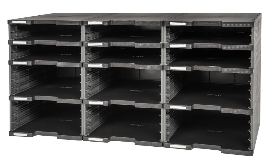 EcoBlack MODULODOC Recycled med 12 fack är ett elegant sorteringssystem till kontoret.