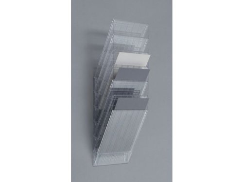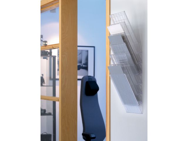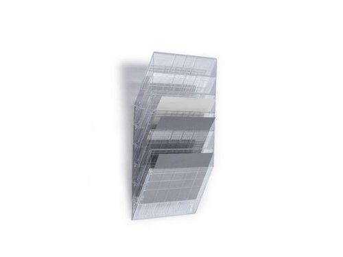 Skapa ett utrymme för visning av tidskrifter eller ett snabbt arkiveringssystem för A4-dokument med denna väggdisplay från Durable Flexiboxx. Med sex fack ger den här horisontella displayen snabb ordning på kontor och i väntrum, samtidigt som designen är enkel att installera. Installera den här Flexiboxx-väggdisplayen på några minuter i alla rum som har användning för extra arkivering eller tidskriftsförvaring. - Organisera pärmar, tidskrifter eller dokument - 6 separata fack för organisation - Monteras horisontellt i liggande format - Färg: Transparent - Väggdisplay med måtten 390 x 295 x 165 mm