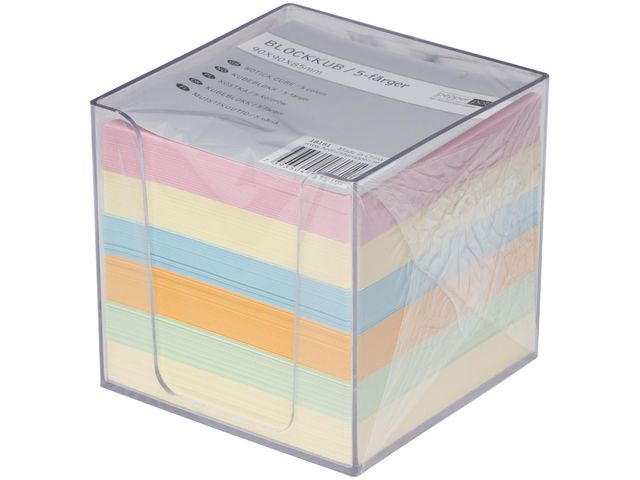 Kub med lösa ark i plastbehållare med. Papper i sorterade färger med totalt 850 ark. Passar till artiklar: 18184 samt 18185.