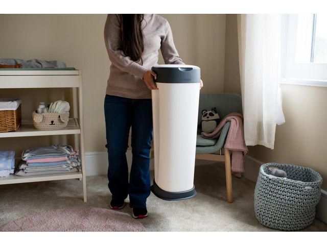 Höjden på blöjbehållaren är skonsam för ryggen eftersom du inte behöver böja dig eller sträcka dig ner - så du kan göra dig av med smutsiga blöjor på ett bekvämare och smidigare sätt.