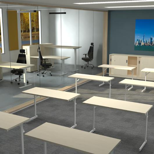Produkten uppfyller Möbelfaktas kravspecifikation gällande kvalitet, miljö och socialt ansvar. Ett komplett skrivbord med svensktillverkat höj- och sänkbart 2-motorigt stativ med 25 mm´s tjocka rektangulära skrivbordsskivor. Skrivbordet har steglös höjdreglering mellan 630-1290 mm, vilket ger en slaglängd på hela 660 mm som gör det lätt för användaren att skapa en ergonomisk arbetsmiljö. Fristående ben ger optimal rörlighet i och med obegränsat benutrymme. Ljudnivå < 42 dBa. Skulle behoven ändras framöver så är stativet flexibelt i sidled flexibelt mellan 1150 - 1740 mm, detta innebär att samma stativ kan användas på skivor mellan 1200 - 2000 mm. Stativet är kvalitets och miljöcertifierade. Godkänt Maskindirektiv 2006/42/EC EMC-direktiv 2014/30/EU Lågspänningsdirektiv 2014/35/EC REACH, WEEE och RoHS 3 2015/863 EN 527-1:2011 Typ A, EN 527-2:2016 ISO 21016 UL 962 ETL listad. Livslängd minst 10 000 cykler.