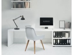 Bordslampa med bred skärm och fot samt roterbar dubbelarm som gör det enkelt att rikta ljuset precis dit du är i störst behov av det.