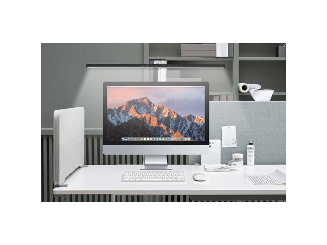 Denna innovativa, slimmade skrivbordslampa är 80 cm hög och enkel att installera tack vare klämman som du fäster på baksidan av skrivbordet. När den placeras ovanför din datorskärm och ditt tangentbord ger den stor spridning av ljuset, perfekt anpassad belysning tack vare de två taktila strömbrytarna på huvudet där den ena varierar ljusstyrkan och den andra erbjuder tre färgtemperaturer. Belysningen är utrustad med en ljussensor och anpassar sig automatiskt beroende på det omgivande ljuset, så du kan anpassa belysningen till dina behov och samtidigt minska trötthet och visuell stress för optimal komfort (avkoppling, koncentrerat arbete, läsning). STRATA är perfekt för en eller två skärmar, den anpassar sig också till alla typer och storlekar på skärmen och passar perfekt till din skrivbordsmiljö.
