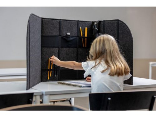 Ljuddämpande bordsskärm ger en effektiv avskärmning mellan elever.