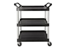 Dess stora hyllor rymmer olika sorters utrustning, allt från rengöringsprodukter till köksredskap. Vagnen har öppna sidor vilket gör den enkel att fylla och minimerar ansträngning.
