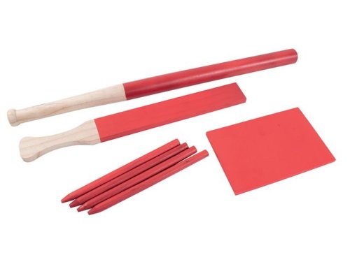Detta set innehåller två trärack, en brännplatta, fyra markeringsspikar och en boll. Nu är allt förberett för spelet att dra igång, vem kommer att segra när matchen väl är i gång?