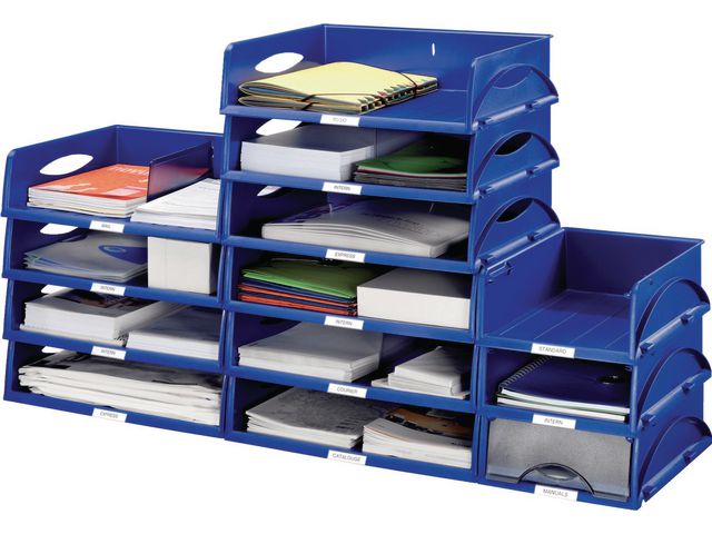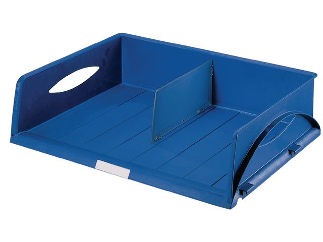 Brevkorg för stora format. Perfekt vid kopieringsmaskinen, inbindningsmaskinen eller printern.Sorty kan staplas vertikalt och sättas ihop horisontellt. 1 avdelare medföljer. För formaten: A4/A3/B3/C4. Mått: (BxHxD) 508x127x380mm. Blå. - A3-format, passande för sortering av stora dokument - Flexibel användning, kan delas in i två fack som passar till 2 x A4-format (1 avdelare medföljer) - Stapelbar, med snap-in fästen för säker stapling med andra Sorty modeller - Möjlighet att stapla 12 brevkorgar (helt fyllda) - Två bekväma handtag gör det möjligt att ta brevkorgen med sig - Etiketthållare kan placeras var som helst längs den främre nedre kanten