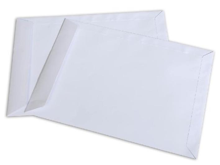 Kuvert med öppning kortsida. Tillverkat i stadigt vitt 120g papper. Självhäftande med remsa för smidig och säker förslutning.