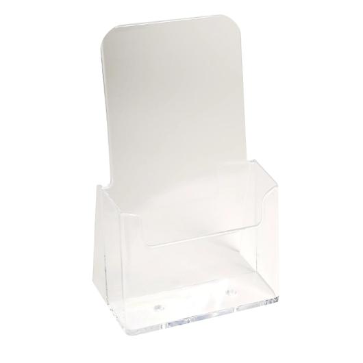 Visa det snyggt och smart! Ett broschyrställ med ett fack för 1/3 A4. Stället är tillverkat av klar polystyren. Varje fack har ett djup på 28 mm. Levereras färdigmonterat.