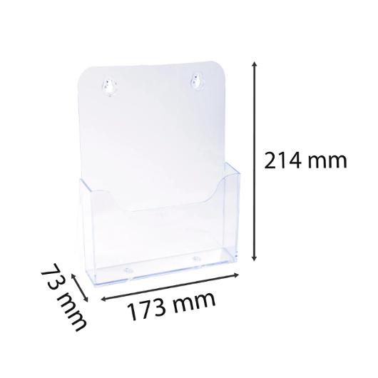 Ett broschyrställ med ett fack för A5. Stället är tillverkat av klar polystyren.