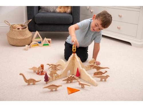 Graverade med taktila träd, ormbunksväxter och lava, gör avdelarna till en idealisk resurs för barn att skapa små världsscener. Den centrala vulkanformen skapar också en rolig fokuspunkt för diskussioner om geologi. Stödjer följande inlärningsområden: