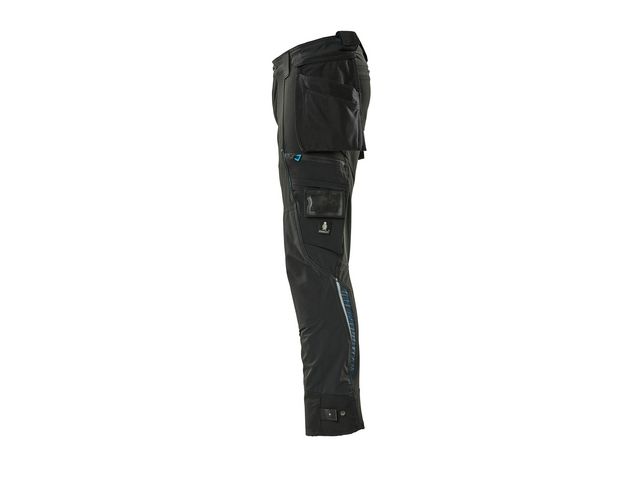 Arbetsbyxor med ett multifunktionellt stretchtyg som kombinerar låg vikt med mycket hög slitstyrka och är dessutom vattenavvisande. De praktiska hängfickorna i slitstark CORDURA® kan enkelt tas av när de inte behövs, tömmas eller när byxorna ska tvättas. De elastiska knäfickorna är tillverkade av en kombination av CORDURA®, Kevlar® och den extremt slitstarka fibern Dyneema®. Effektiv ventilation vid knäområdet via dragkedja på sidan av benet. Extra synlighet med reflekterande detaljer. För maximal komfort rekommenderas knäskydd 00718-100 för denna modell, som är certifierad för användning med MASCOT knäskyddstyp, LONG. Tyget känns knappt mot huden eftersom fickorna är integrerade i designen. Avtagbara hängfickor i slitstark CORDURA® ? den främre delen av höger hängficka har stickresistent Kevlar®-förstärkning i botten.Verktygsstroppar på båda sidor av linningen och lårlomme med telefonficka med magnetlås och integrerad ID-korthållare.