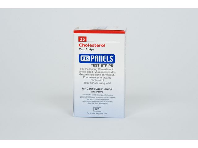 PTS Panels Total Cholesterol Test Strips ger en kvantitativ mätning av totalt kolesterol i helblod.