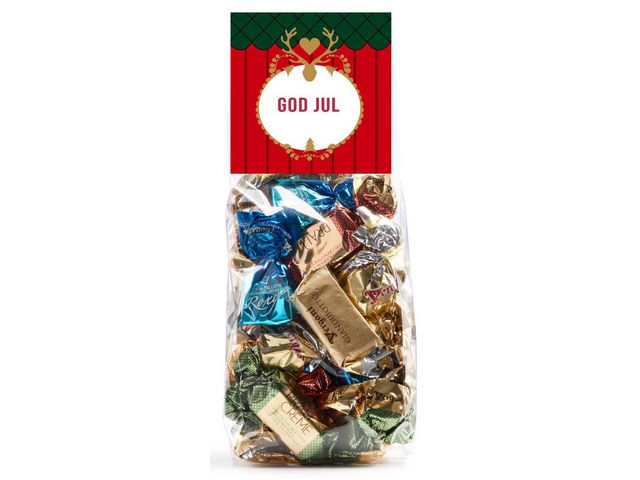 En elegant cellofanpåse fylld med exklusiva italienska praliner i blandade smaker. En lyxig och smakfull julgåva som utstrålar kvalitet ? perfekt för att imponera vid julens alla tillfällen. Påsen har en God Jul hälsning.