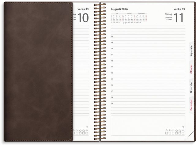 Kalender med mjuk pärm i konstläder med den populära flärpen som kan användas som bokmärke. Burdes Dagbok har en dag per sida med timindelning 08-19 vilket gör att den passar både för detaljerad planering och dagboksanteckningar. Genom att sortera dina tankar kandu lära dig mer om dig själv, få enklare att hitta lösningar på problem och dessutom bättra på minnet.Kalender 2026 från Burde. Format: 135x205 mm. Layout: Dag/sida. Timindelning 8-19. Kalendarium: 2026-01-01 - 2026-12-31. Omslag: Konstläder. Spiralbunden. Innehåll: Kyrkliga helgdagar, Flaggdagar, Helgdagar/aftnar, Månfaser, Namnsdagar, Internationella helgdagar översikt, Urstansat månadsregister, Temadagar/händelser, Årsöversikt/årsöversikter, Årsplan/årsplaner. Antal sidor: 400. Miljöinformation: FSC® papper.