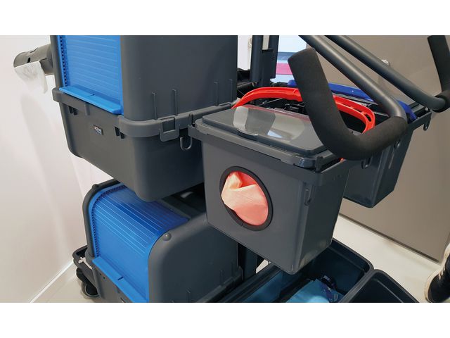 Dispensern i plast för Activa JustOnce engångsdukar är lätt att bära med sig och flytta med hjälp av handtaget. Dispenserhinken finns i två färger (handtagen) för att matcha dukarna, på så sätt kan du enkelt hålla koll på vilken hink och städduk som ska användas till vad. Placeras på städvagnen och kan lätt lyftas av om det behövs.