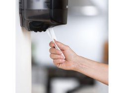 Centrummatad dispenser för torkrulle, kompakt design för smart och effektiv torkning av både ytor och händer.