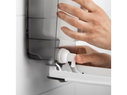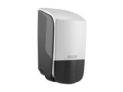 Dispenser för ett stort urval av tvålar och handdesinfektion.
