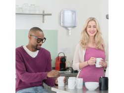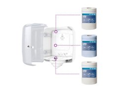Perfekta lösningen för hand- och ytavtorkning. Tork Reflex Dispenser Centrummatad är den perfekta lösningen för hand- och ytavtorkning i professionella miljöer och har utformats för att passa din miljös arbetsflöde. Vidrör endast det du använder med utmatning av ett ark i taget och nå pappret från vilken vinkel som helst med den roterande munstycksfunktionen. Detta lättanvända, hygieniska och slitstarka system minskar förbrukningen med upp till 37 % jämfört med andra centrummatade dispensrar från Tork. - Lätt att använda med endast en hand - Minskar risken för korskontaminering, eftersom användarna endast vidrör det papper som används - Dispensern är tillverkad av polykarbonatplast och klarar därför de svåraste miljöerna - Förbättrad total hygien tack vare enkel rengöring - Tork Reflex M4 - Färg: Vit