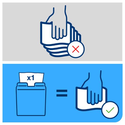 taget, vilket förbättrar hygienen och minskar förbrukningen med minst 25% jämfört med traditionella servettdispensrar.