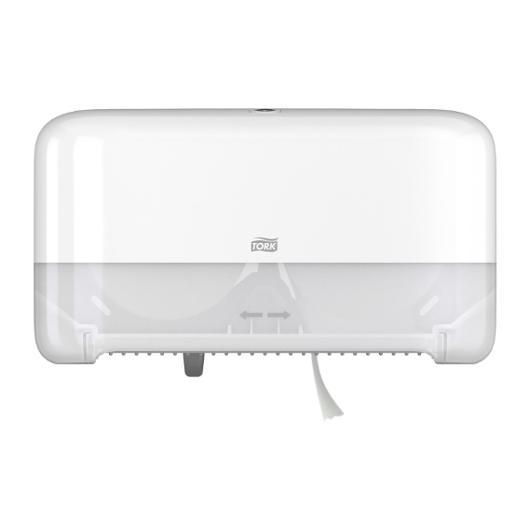 Tork Coreless Midsize Twin toalettpappersdispenser. Tork Dispenser Coreless Mid-size Twin Toalettpapper passar perfekt för toalettutrymmen med medelhög besöksfrekvens, där gästernas välbefinnande är extra viktigt. Den garanterar hög effektivitet och att toalettpapper alltid är tillgängligt för gästerna, eftersom den har plats för upp till nio gånger mer papper än två vanliga toalettpappersrullar. - System T7 - System Toalettpapper Mid-sizeTwin utan hylsa - Material: Plast - Höjd: 207 mm - Bredd: 360 mm - Djup: 130 mm - Färg: Vit
