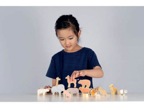 Tränar motorik, hand-och öga koordination och logiskt tänkande. I setet ingår 16 olika djur, både stora och små från 3-11 cm. Lekfull lek som inbjuder till djurlära och balansträning.
