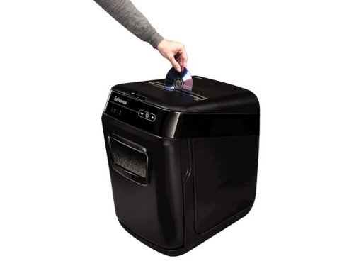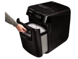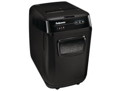 Dokumentförstöraren Fellowes® Automax? 200M med korsstrimling passar alla mindre kontor. Fellowes® Automax? 200M är en dokumentförstörare för tunga jobb som passar för 1?3 användare och strimlar upp till 200 A4-ark. Dokumentförstöraren gör alla konfidentiella dokument till mycket säkra (P-5) korsstrimlade partiklar på 2 x 14 mm så att post, kundinformation, kontoutdrag och mötesanteckningar är säkra från nyfikna ögon. Den här dokumentförstöraren är försedd med Fellowes® Auto Reverse System som förhindrar pappersstopp innan de ens hinner uppstå och hanterar alla slags papper. Mycket tyst drift tack vare Fellowes® SilentShred®-teknik som minskar störande ljud på gemensamma kontor. Pappersuppsamlaren på 32 liter är perfekt för snabb och prydlig kassering av strimlade papper. 200M går automatiskt in i viloläge efter två minuters inaktivitet, vilket sparar ström och pengar. - Strimlar häftklamrar och kreditkort - Ger säkerhet på P-5-nivå - Korsstrimlar i bitar på 4 x 38 mm - Kapacitet: upp till 200 A4-ark automatiskt och 10 ark manuellt - Har automatiskt backsystem och SilentShred®-teknik för att förhindra pappersstopp och minska ljudnivån - Avsedd för 1?3 eller fler användare - Körtid: upp till 12 minuter - Soptunna: 32 liters kapacitet - Färg: Svart