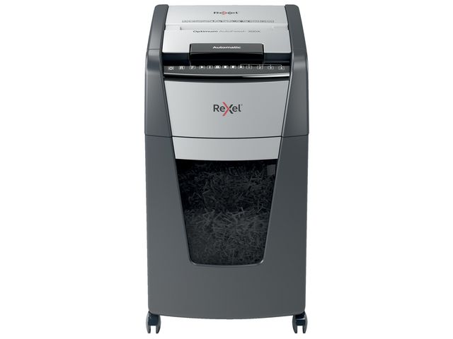 Optimum AutoFeed+ 300 makulerar automatiskt upp till 300 A4 pappersark (80 g/m2) åt gången, i P-4 (4x25 mm) tvärsnitt. Dokumentförstöraren som har automatisk inmatning är idealisk för användning på kontoret på grund av dess kompakta 60L-avfallsbehållare. Du behöver inte mata papper manuellt eller ta bort häftklamrar och gem innan dokumentet ska förstöras. Den här automatiska dokumentförstöraren gör allt arbete åt dig. Vi rekommenderar att man använder oljeark var tredje gång man tömmer dokumentförstörarens avfallsbehållare.