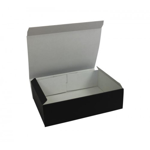 Presentbox, e-handelslåda tillverkad av 2 mm miniwell med vit insida, svart utsida.