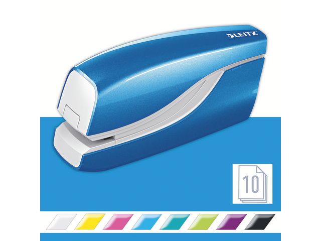 Gör häftning enkel med denna handhållna och batteridrivna elhäftare från Leitz. Leitz elhäftare häftar upp till 10 ark papper (80 g/m2). Denna häftapparat är enkel att använda med en hand. Dessutom blir den ett snyggt tillägg till ditt skrivbord. Tack vare batteridriften kan du enkelt ta med dig häftapparaten (batteri ingår ej). Ge din arbetsplats eller ditt hem en WOW-faktor med denna serie av produkter med slående, snygga färger. Använd e1 häftklammer för perfekt prestanda. GS-testad och 3 års garanti vid användning med Leitz klammer. - Häftar upp till 10 ark (80 g/m2) - Enkel att använda - Batteridriven (4 x 1,5V AA,LR6) (batteri ingår ej) - e1 häftklammer - Färg: Blå - 3 års garanti med Leitz klammer