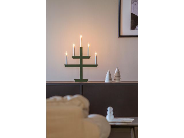 Klassisk adventsljusstake i lackerat trä som sprider ett varmt och stämningsfullt ljus under årets mörkaste tid. Med fem ljus och en tidlös design passar den lika fint i fönstret som på bordet.