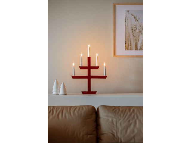 Klassisk adventsljusstake i lackerat trä som sprider ett varmt och stämningsfullt ljus under årets mörkaste tid. Med fem ljus och en tidlös design passar den lika fint i fönstret som på bordet.