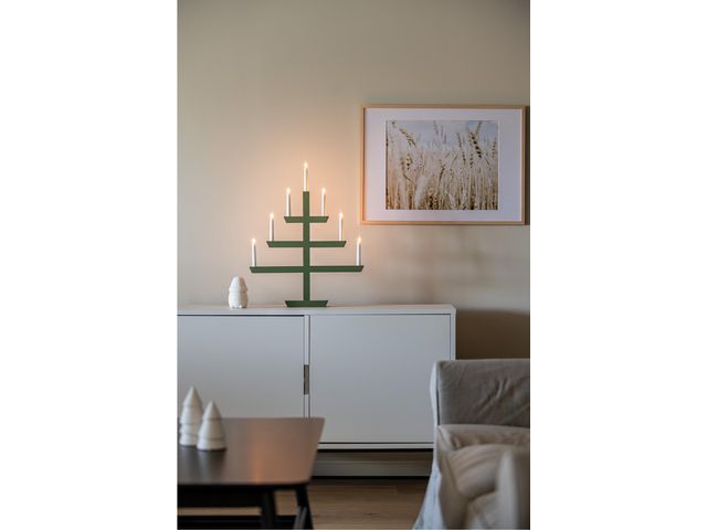 • Elljusstake 7 ljus 48x61cm trä grön