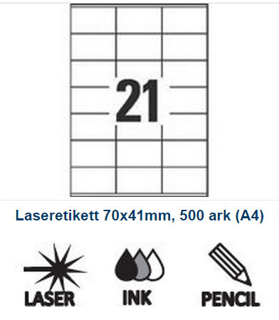 Mycket billig etikett 70x41mm 21st etiketter per A4 ark, 500 ark/fp, Avery 3481